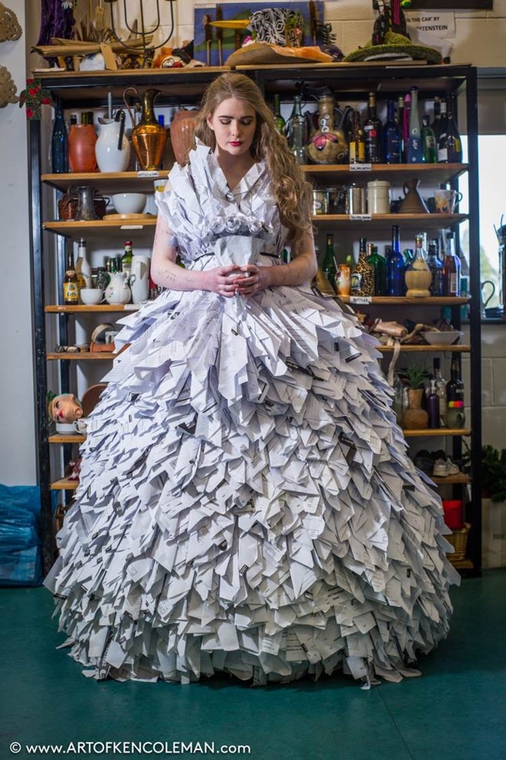 dress made from CDs and Bubblewrap, designed to highlight the problem of what